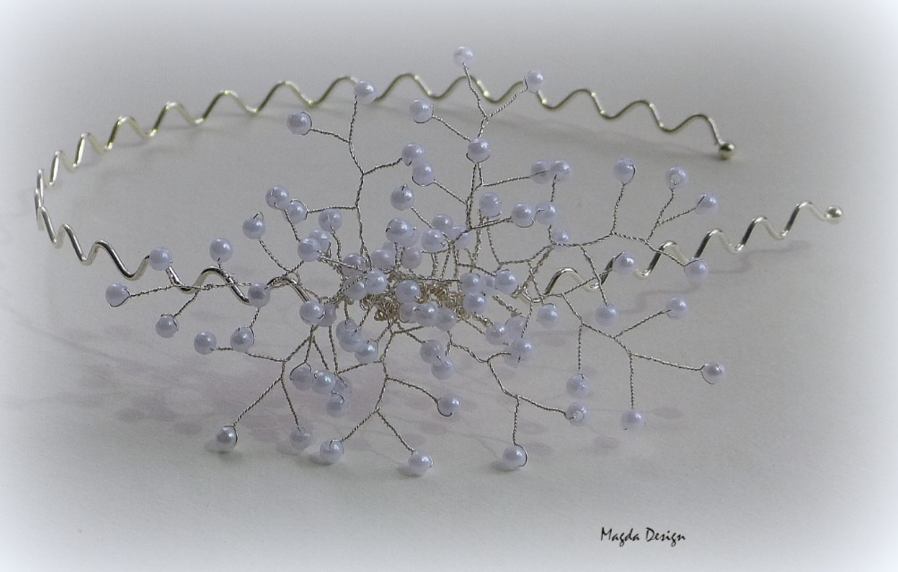 Čelenka vyrobena z postříbřeného drátku a bílých perliček