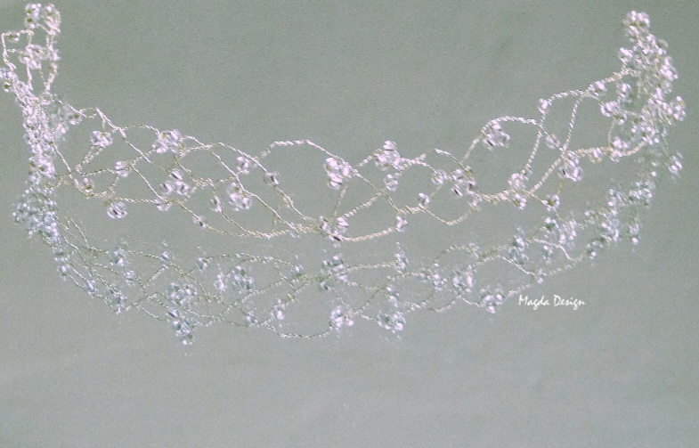 Tiara/čelenka s postříbřeného drátku a skleněných kamínků se stříbrnými odlesky.