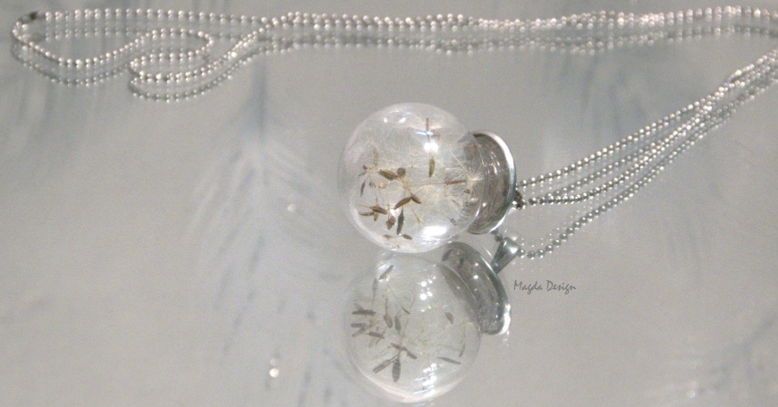 Jemný přívěšek s ručně foukaného skla s řetízkem.