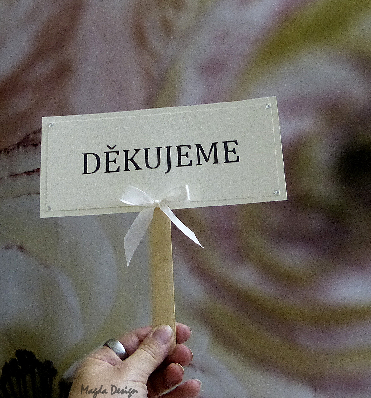 Cedulka s nápisem - DĚKUJEME, krásný doplněk a zpestření fotografií.