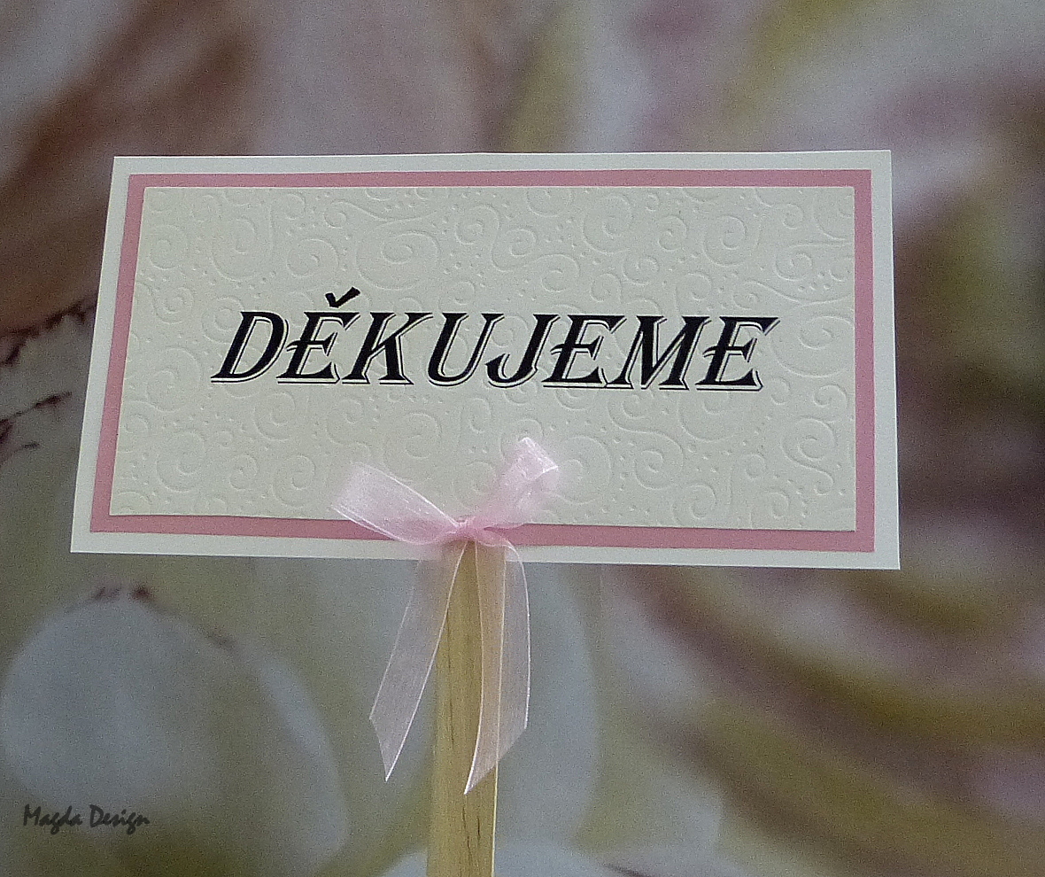 Cedulka s nápisem - DĚKUJEME, krásný doplněk a zpestření fotografií.