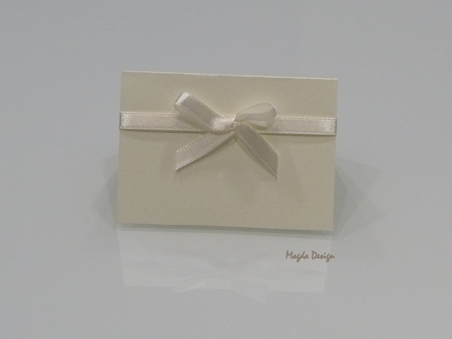 Ivory jmenovka zdobená saténovou stuhou s mašličkou
