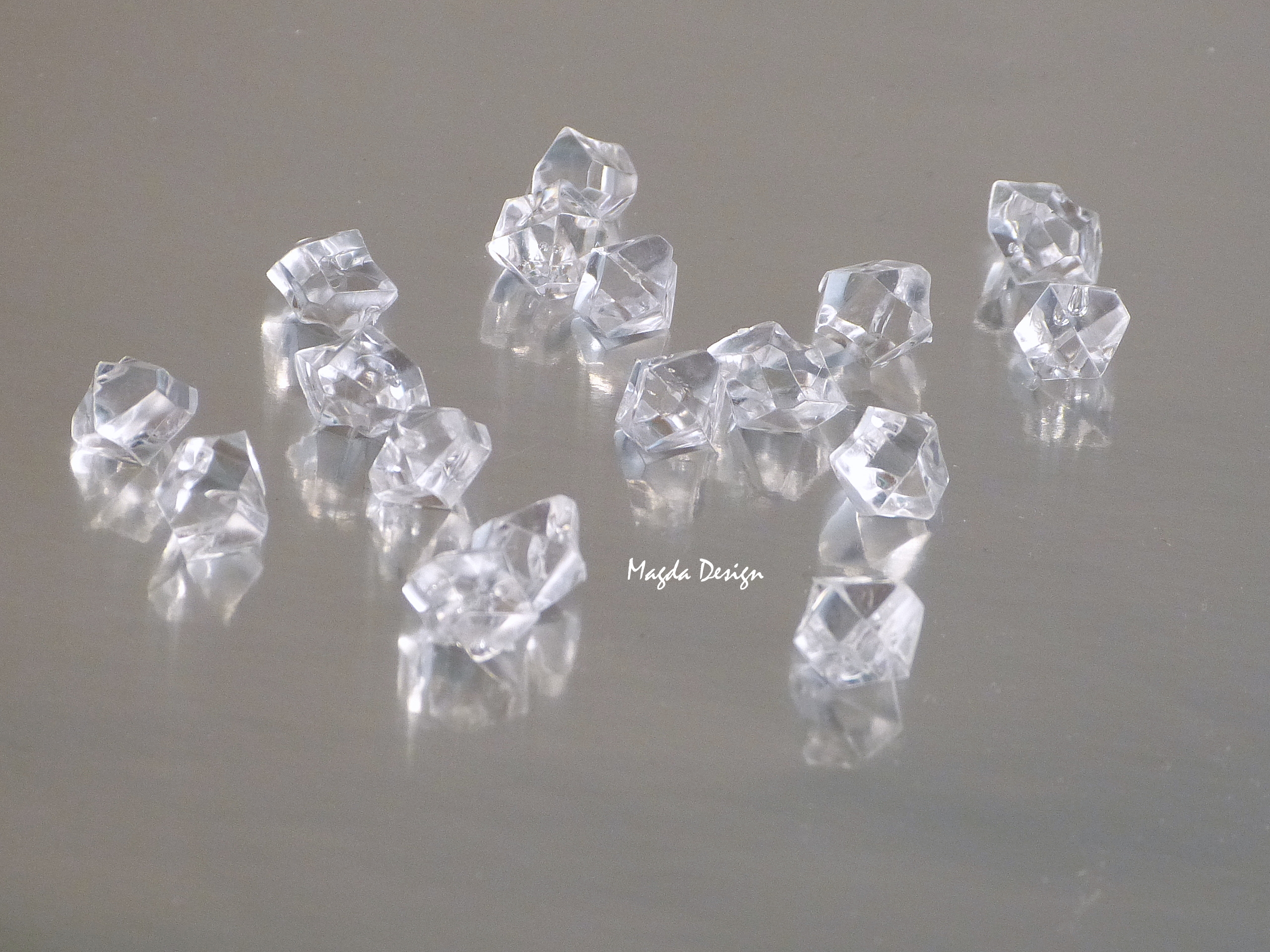 Krásu plastových krystalků můžete přenést i na svatební tabuli, které dodá zářivý lesk a slavnostní ráz. Obzvláště v blízkosti světla svíček se budou kamínky krásně lesknout a navodí tak velmi působivou atmosféru.