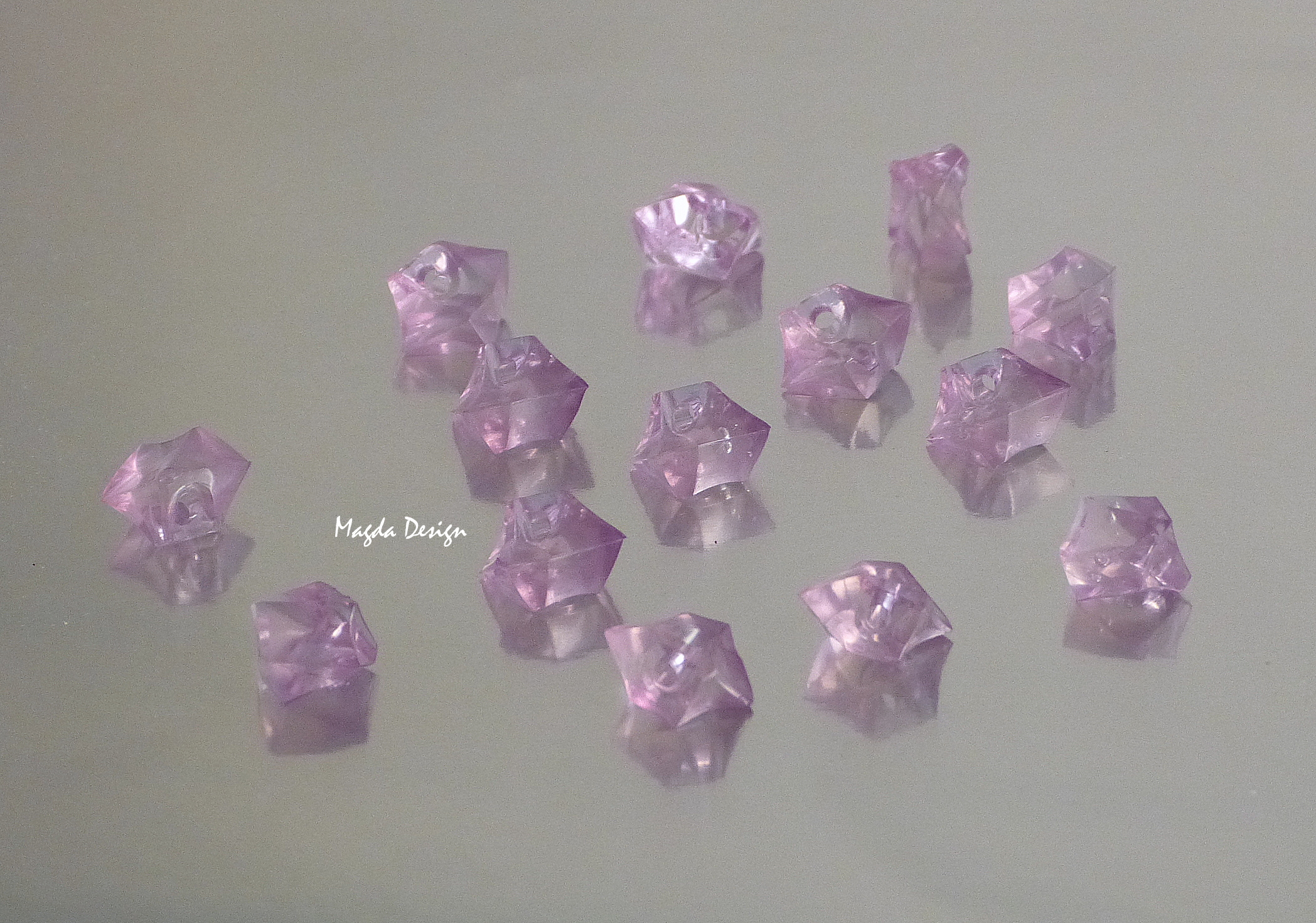 Krásu plastových krystalků můžete přenést i na svatební tabuli, které dodá zářivý lesk a slavnostní ráz. Obzvláště v blízkosti světla svíček se budou kamínky krásně lesknout a navodí tak velmi působivou atmosféru. Díky dírce se také dají navlékat jako korálek a libovolně zavěsit.