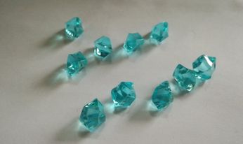 Krásu plastových krystalků můžete přenést i na svatební tabuli, které dodá zářivý lesk a slavnostní ráz. Obzvláště v blízkosti světla svíček se budou kamínky krásně lesknout a navodí tak velmi působivou atmosféru. Díky dírce se také dají navlékat jako korálek a libovolně zavěsit.