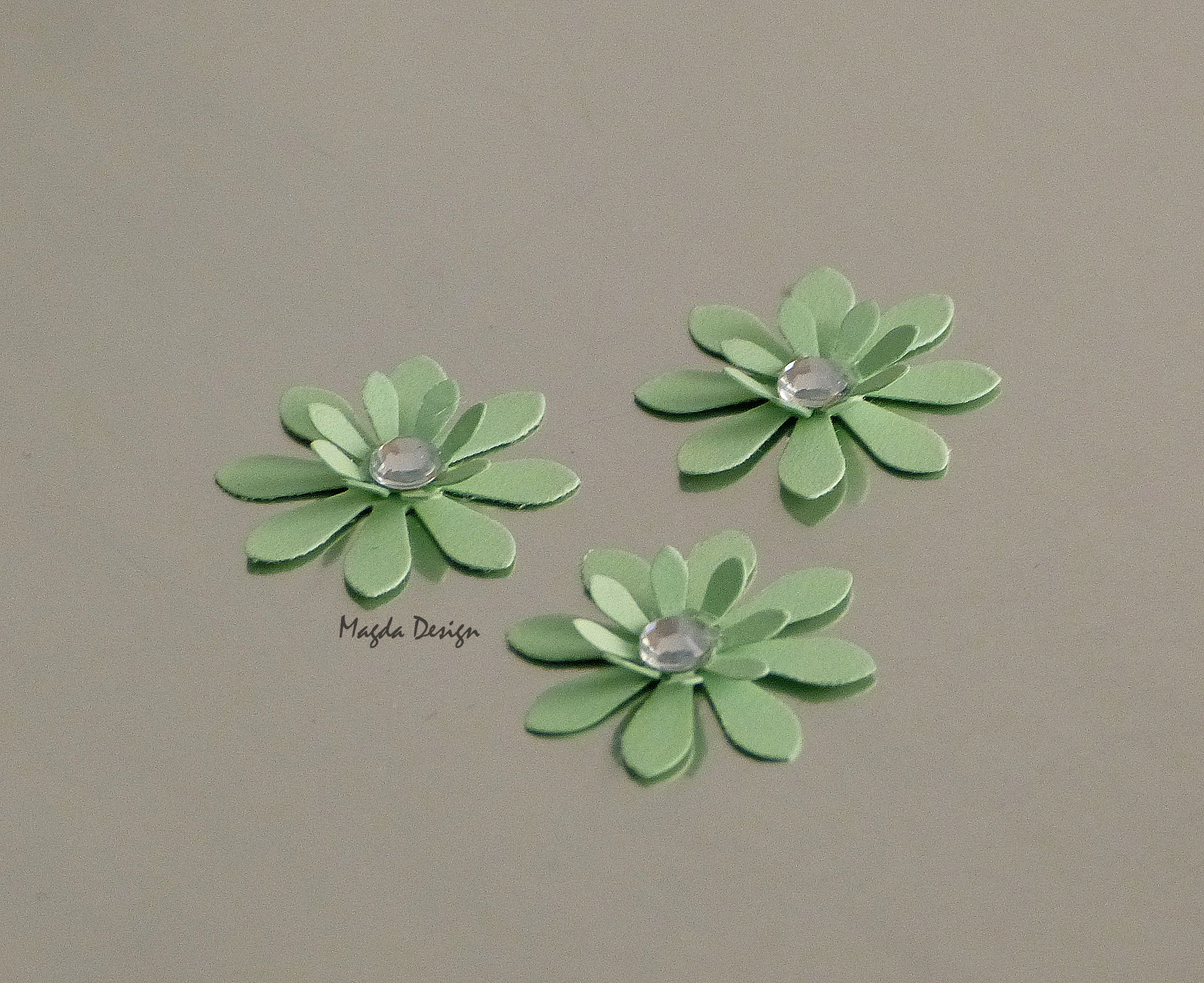 Kytičky vyrobené s vysokogramážního kartonu, dozdobené kamínkami.
