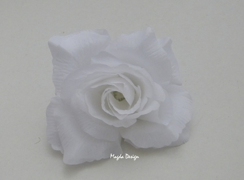 Látková růžička velikosti cca 10 centimetru. Vhodná k dekoraci, mašlí, svatební tabule, košíčků pro družičky,na floristické
