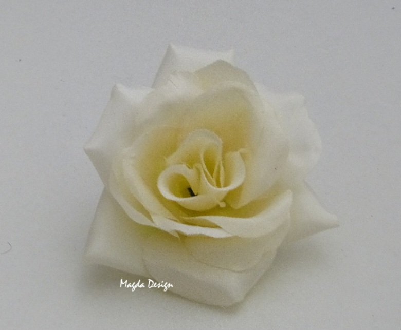 Látková růžička velikosti cca 11 centimetru. Vhodná k dekoraci, mašlí, svatební tabule, košíčků pro družičky,na floristické
