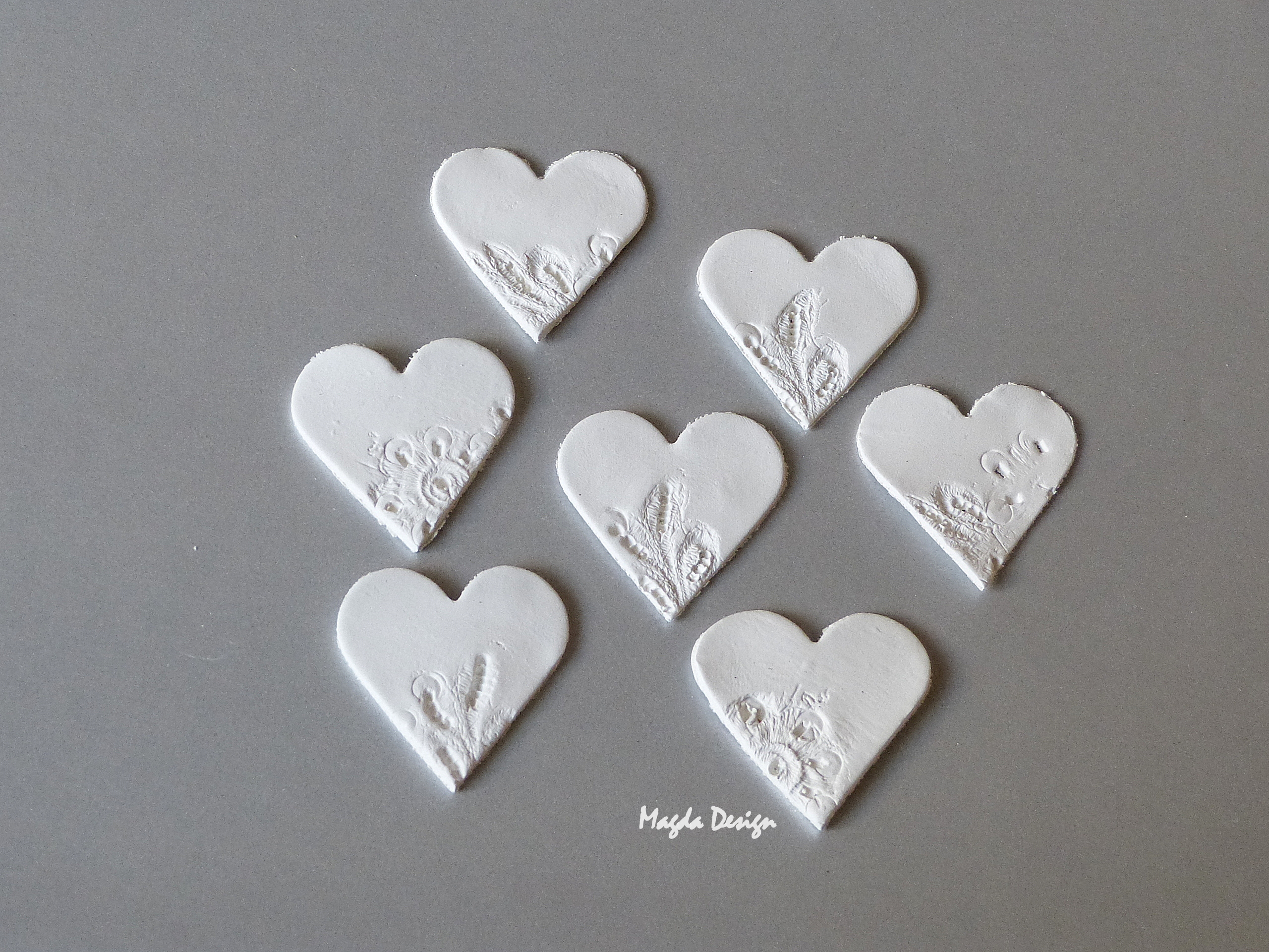 Srdíčka s bílé keramické hlíny,neglazovaná, zdobená. Cena za 1kus Rozměry cca 4 x 4,5 cm