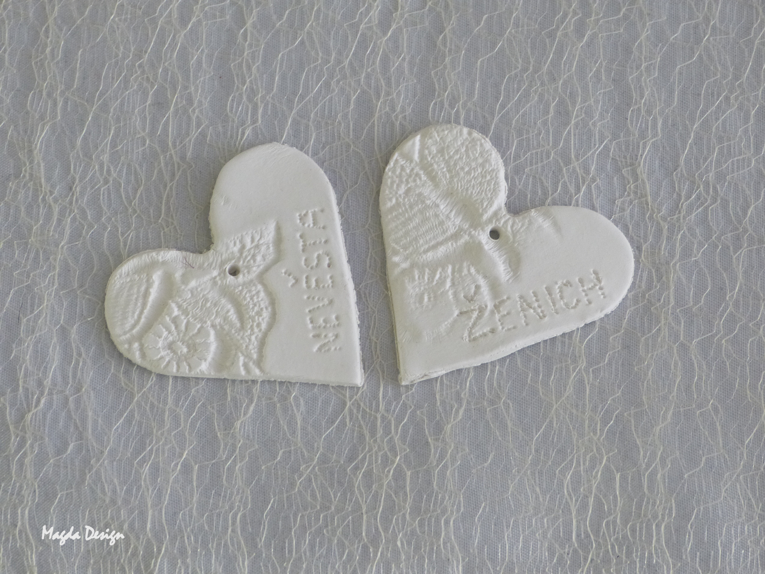 Srdíčky vyrobená z bílé keramické hlíny,neglazovaná.